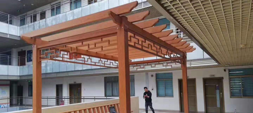 廊架是景觀中,一種位于道路上方的、有屋頂形制的開放型景觀結(jié)構(gòu),它起到了供人停留休息,以及裝飾空間的功能,具有很強(qiáng)的功能性和美觀性,往往能成為點(diǎn)睛之筆,特別是在這炎熱的夏天,一個(gè)好的廊架能讓人們舒適地乘涼。 廊架作為中國園林中重要的結(jié)構(gòu)元素之一,主要起到聯(lián)系點(diǎn)和組織游覽路線的作用。大家或許不知道廊架的設(shè)計(jì)原理,但大家一看就覺得很親切,一提及就知道它在哪,起到快速識(shí)別的功能、形成聚合效應(yīng)。 廊架,它的造型是小巧卻又有主題的,它可以精致無比、典雅高貴;它可以單純簡約、質(zhì)樸醇厚;它可以傳統(tǒng)古樸、通俗平凡;它可以別致新穎、現(xiàn)代新奇。它靈活多變,卻又無形之中與周圍環(huán)境和諧統(tǒng)一。