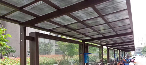 頂棚采用進口聚碳酸酯板,抗沖擊比玻璃強,有效防止高空墜物