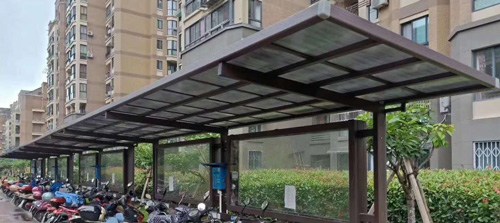 所以材料加工到位,專業(yè)配件連接,現(xiàn)場拼接,無需焊接,安裝時間比傳統(tǒng)車棚快一倍