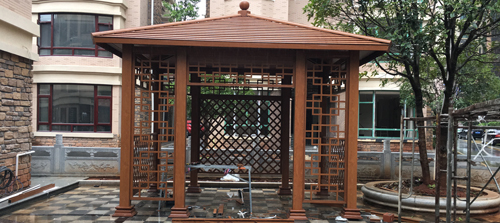 而近些年來(lái),鋁制涼亭受到了很多人的青睞,因?yàn)殇X制涼亭材質(zhì)硬不易老化,后期基本不用維護(hù),其外觀經(jīng)過(guò)木紋處理轉(zhuǎn)印后,質(zhì)地顏色都和木頭很相似,從遠(yuǎn)處更是看不出來(lái)區(qū)別,經(jīng)風(fēng)摧日曬也不易掉色、老化、干裂,而這些在木制涼亭中都無(wú)法避免。而且鋁制涼亭建造后牢固性也很好!