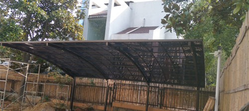 頂棚采用進(jìn)口聚碳酸酯板,抗沖擊是玻璃的數(shù)百倍,有效防止高空墜物