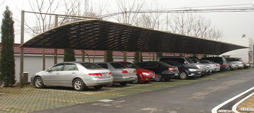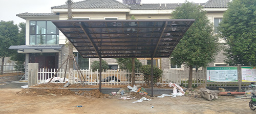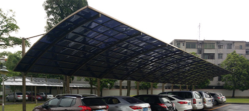 頂棚采用進(jìn)口聚碳酸酯板,抗沖擊是玻璃的數(shù)百倍,有效防止高空墜物