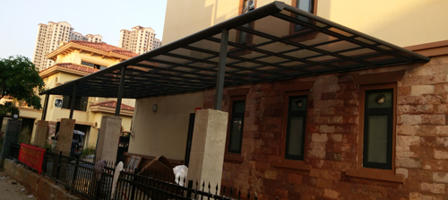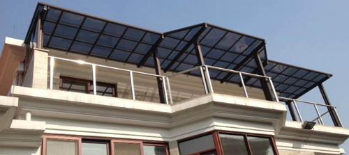 頂棚采用進口聚碳酸酯板,抗沖擊是玻璃的數(shù)百倍,有效防止高空墜物