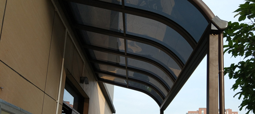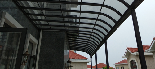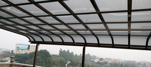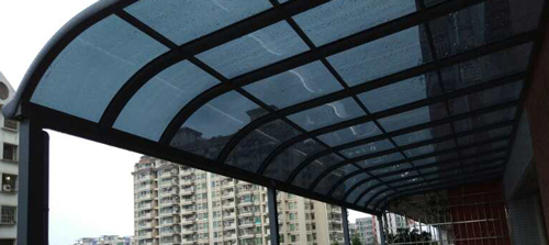 頂棚采用進口聚碳酸酯板,抗沖擊是玻璃的數(shù)百倍,有效防止高空墜物