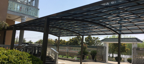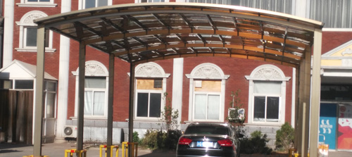 頂棚采用進(jìn)口聚碳酸酯板,抗沖擊是玻璃的數(shù)百倍,有效防止高空墜物