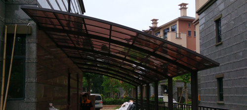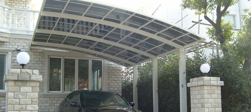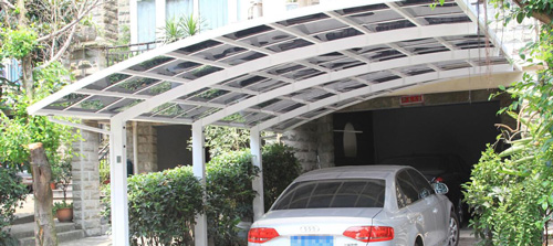 鋁合金停車(chē)棚融合歐式浪漫優(yōu)美弧度,簡(jiǎn)約時(shí)尚的設(shè)計(jì)風(fēng)格,帶水槽和排水管