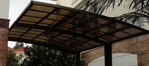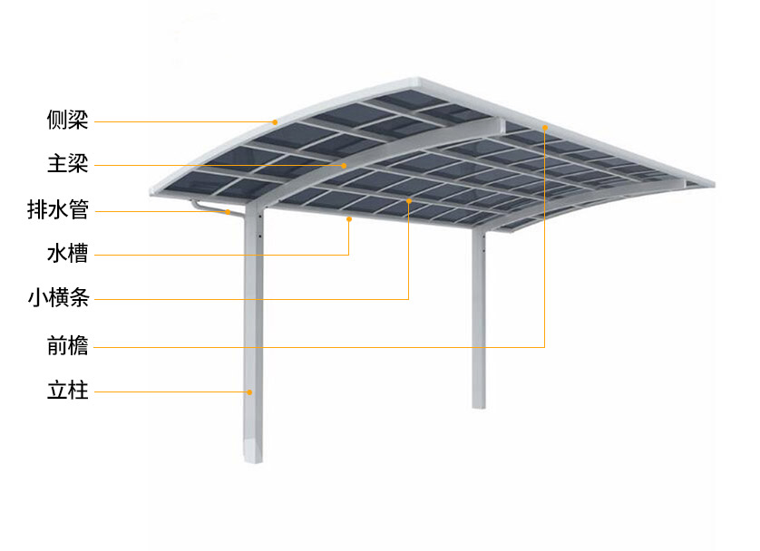 頂棚采用進(jìn)口聚碳酸酯板,抗沖擊是玻璃的數(shù)百倍,有效防止高空墜物