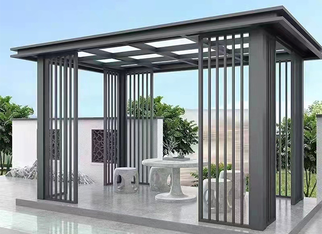 7、新中式鋁合涼亭顏色豐富,可供選擇的顏色眾多。既具有天然木質(zhì)感和木質(zhì)紋理,又可以根據(jù)自己的個性來定制需要的顏色。